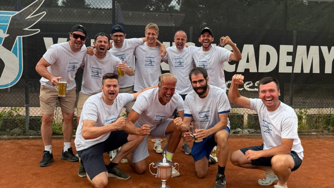 Die Herren 30 des TC Blau Weiss Villingen starteten am Sonntag am Bodensee in die Mission Meistertitel. Gegner war kein Geringerer als der TC Radolfzell, gegen den die Blau Weissen schon etliche harte Begegnungen ausgefochten haben. Auf den Spitzenpositionen schlug Dominik Adelhardt den Franzosen Laubut mit 6:0 6:2, Stefan Hauser unterlag dem Ungarn Boros 5:7 0:6. Patrick Müller verlor ebenfalls auf Nummer 3, doch hinten ließen die Villinger nichts anbrennen. Michael Heppler, Misa Draguljevic und Dr. Tobias Storz sorgten für eine komfortable 4:2 Führung. In den abschließenden Doppeln musste nicht gezittert werden, denn mit Hauser/Müller, Adelhardt/Draguljevic und Heppler/Storz holten alle drei Blau Weiss Duos ihre Punkte, so dass der 7:2 Auswärtserfolg klar war und natürlich der Meistertitel gefeiert werden konnte. Nun folgt am 9.August auf der Heimanlage Klosterhalde ein Aufstiegsspiel in die Regionalliga gegen den HTC Bad Neuenahr. Ein weiteres Highlight im Turnierkalender des TC Blau Weiss Villingen für den ehemaligen Bundesligisten.